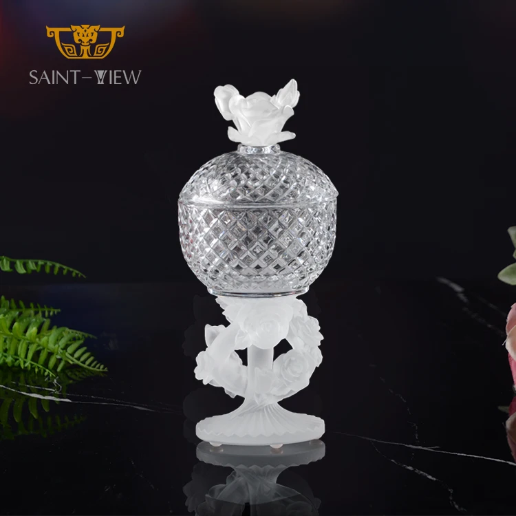 SAINT-VIEW Handmade Crystal Pate De Verre Entertaining Centerpiece Candy Jar Chocolate Plate Home Decor Set
